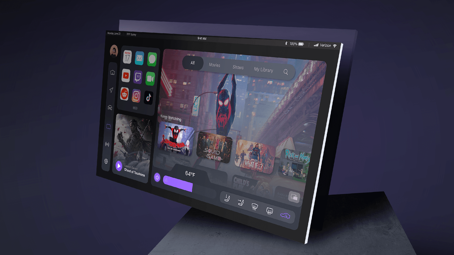 Designed a human-centered experience and developed a clean, intuitive interface for a conceptual self-driving vehicle. The goal was to give back the user’s valuable time—whether for work, entertainment, or relaxation— that would otherwise be spent behind the wheel.