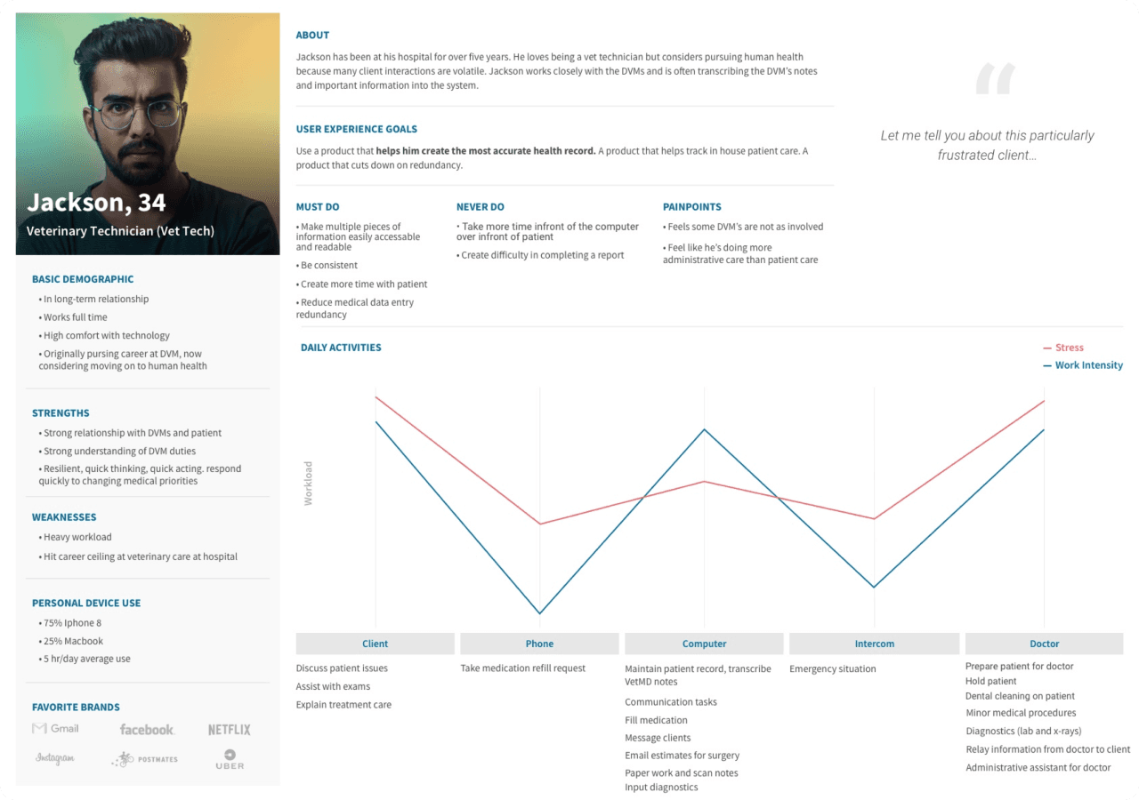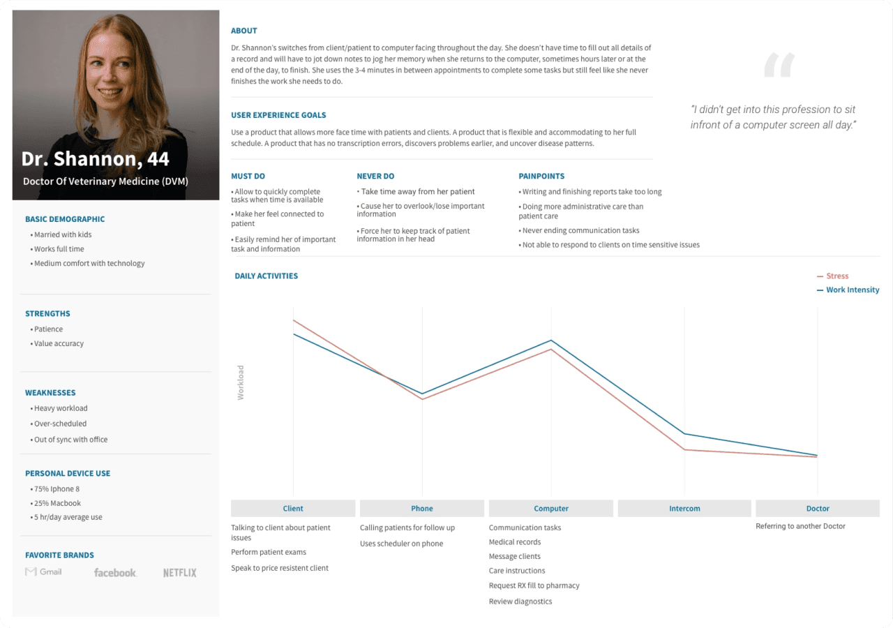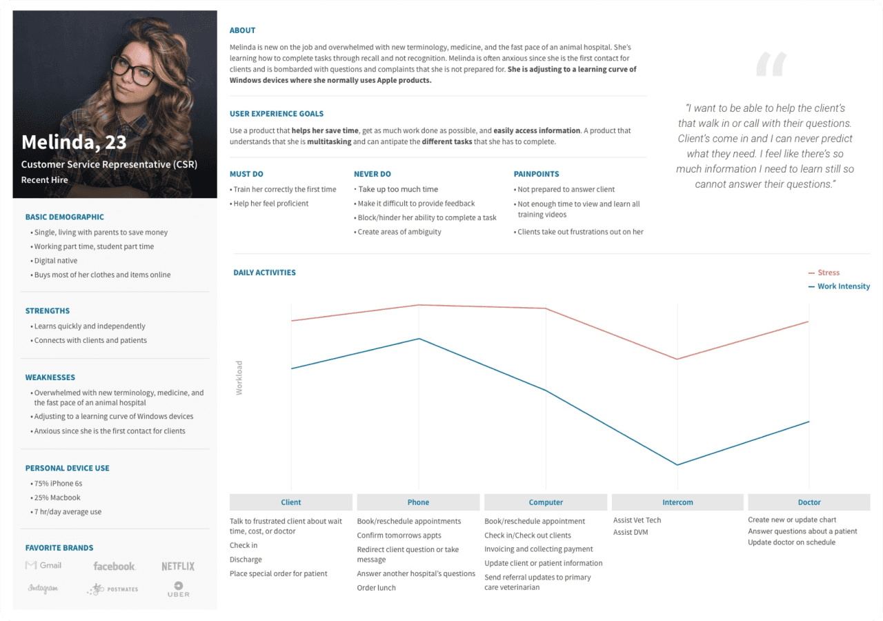 Due to previous user research, there were established user persona for the veterinary hospitals we worked with:
