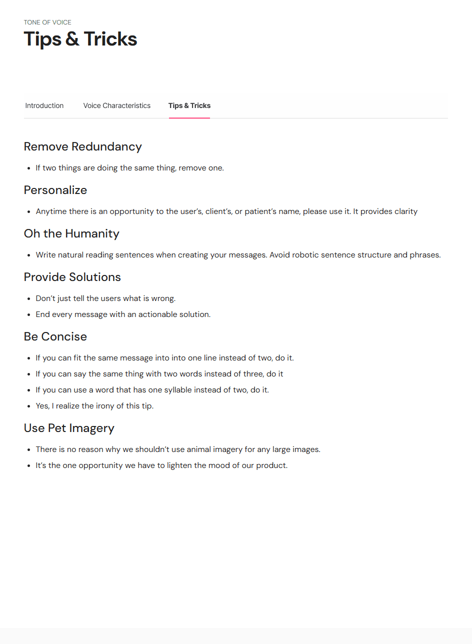 Tone of voice is often overlooked in a design system, but for our team, it played a crucial role. It guided the terminology we used in our designs, ensuring communication that is not only considerate but also authentically human. By doing so, we positioned tone of voice as an integral part of our UX strategy rather than treating it as just a branding exercise.
